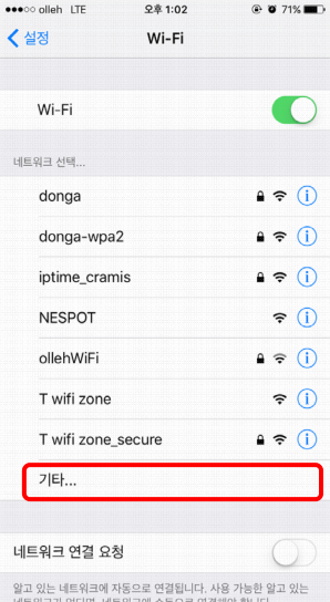 2. <그림2>의 네트워크 선택…에서 기타를 선택합니다.